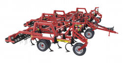 во втором варианте культиватор может работать с любыми рабочими и базовыми опциями, опираясь на передние опорные колеса и задние прикатывающие катки, при этом транспортные колёса при помощи гидроцилиндров полностью подняты вверх. Это даёт возможность максимально использовать функцию зубовых борон и прикатывающих или вычесывающих катков;