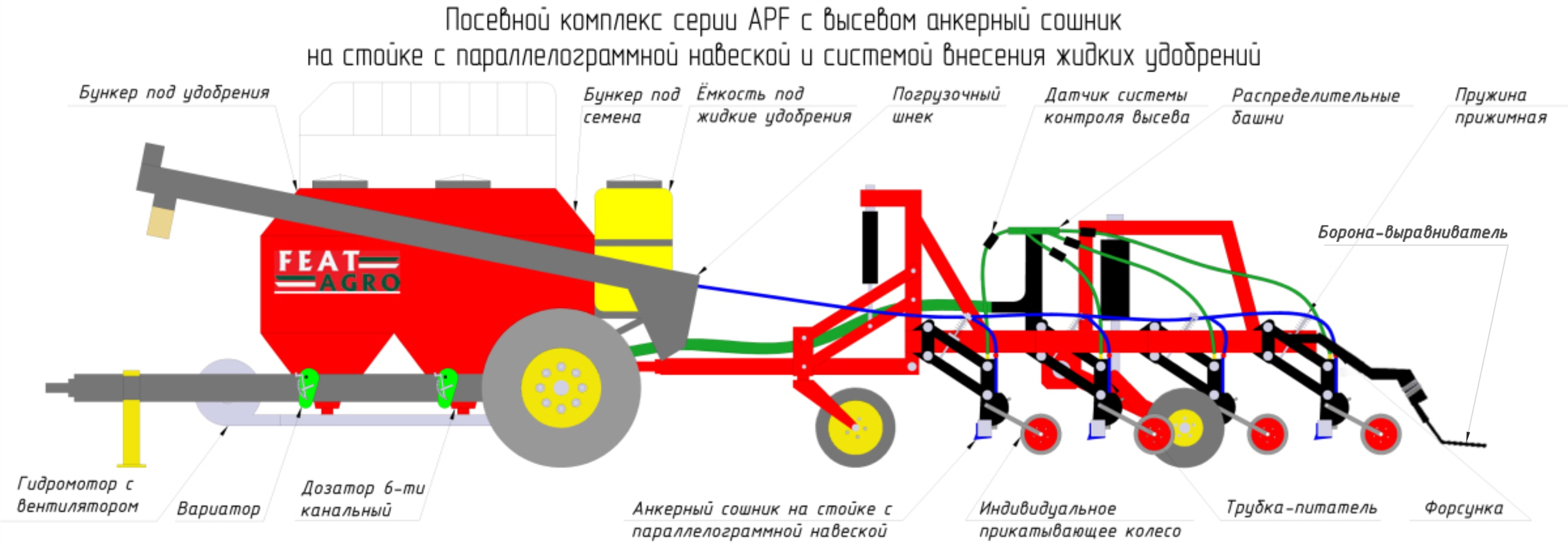 • Установка дополнительной опции - системы внесения жидких удобрений - предусмотрена благодаря выводу питателя в анкер.