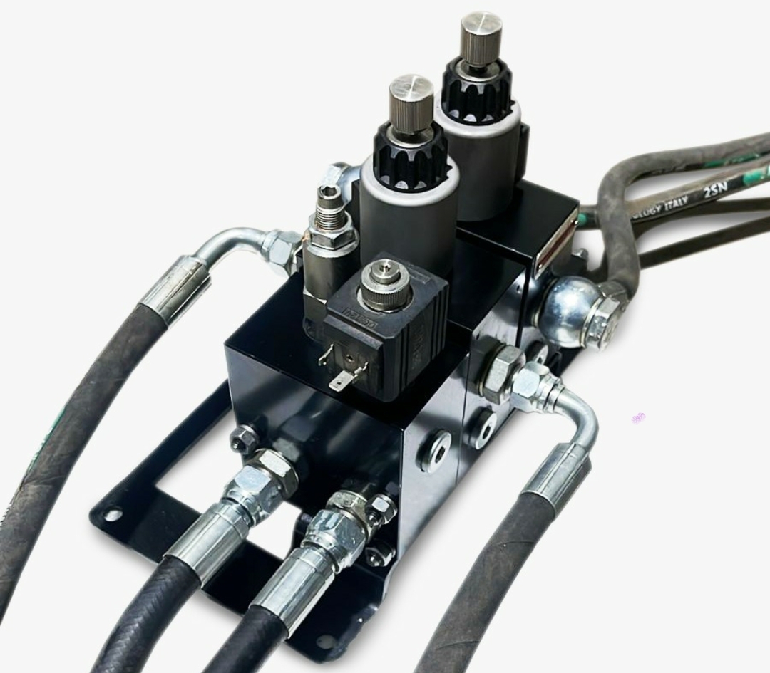 - Гидравлическая система с клапаном регулировки давления и гидроаккумуляторами, позволяет настроить необходимое усилие прижима рабочих органов и поддерживать его постоянно в процессе работы;